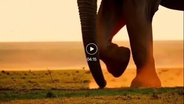 时长拉到极致,4分15秒跟随大象的脚步纵览草原美景。