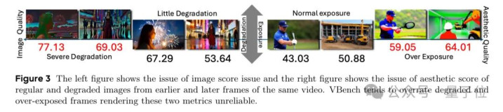 研究人员同时发现,现有长视频评估所使用的VBench基准并不完全准确,一些过亮的坏视频也会被误判为好。