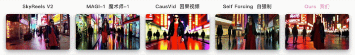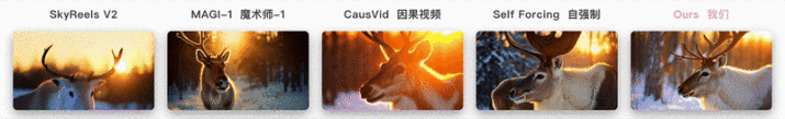 说明Self-Forcing++虽并未专门针对短视频进行训练,但其在短时长场景中仍能保持高视觉质量与语义一致性。
