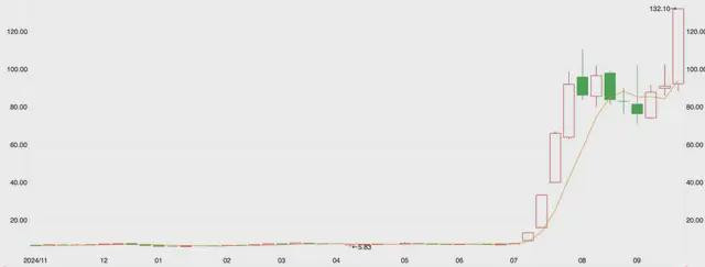 虽然智元机器人此后否认该操作系“借壳上市”,以及未来一年内业务重组的可能,但投资者显然不相信。7月份至今,上纬新材股价从7元/股一度飙升至110元/股。截至9月30日,上纬新材市值已经飙升到533亿。