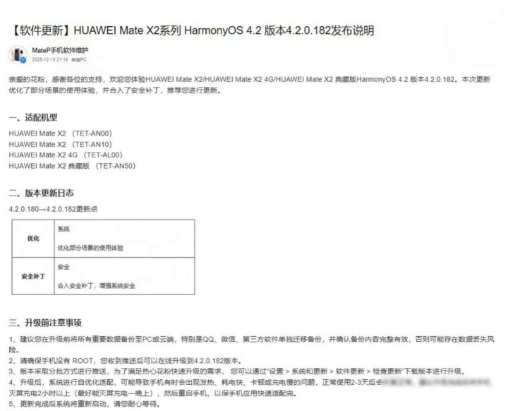 老机型同样获得更新,Mate 30、40、50系列,P40、Nova 8,以及2020年的Mate X2折叠屏都收到鸿蒙4.2推送,官方声称仅优化体验并更新安全补丁,但实际使用下来续航有所提升,后台运行也更稳定,让人猜测华为是在将鸿蒙5的关键技术融入旧系统,延长老手机的使用年限,这种隐晦的升级方式很聪明,既留住了老用户,也让他们感到未被放弃。